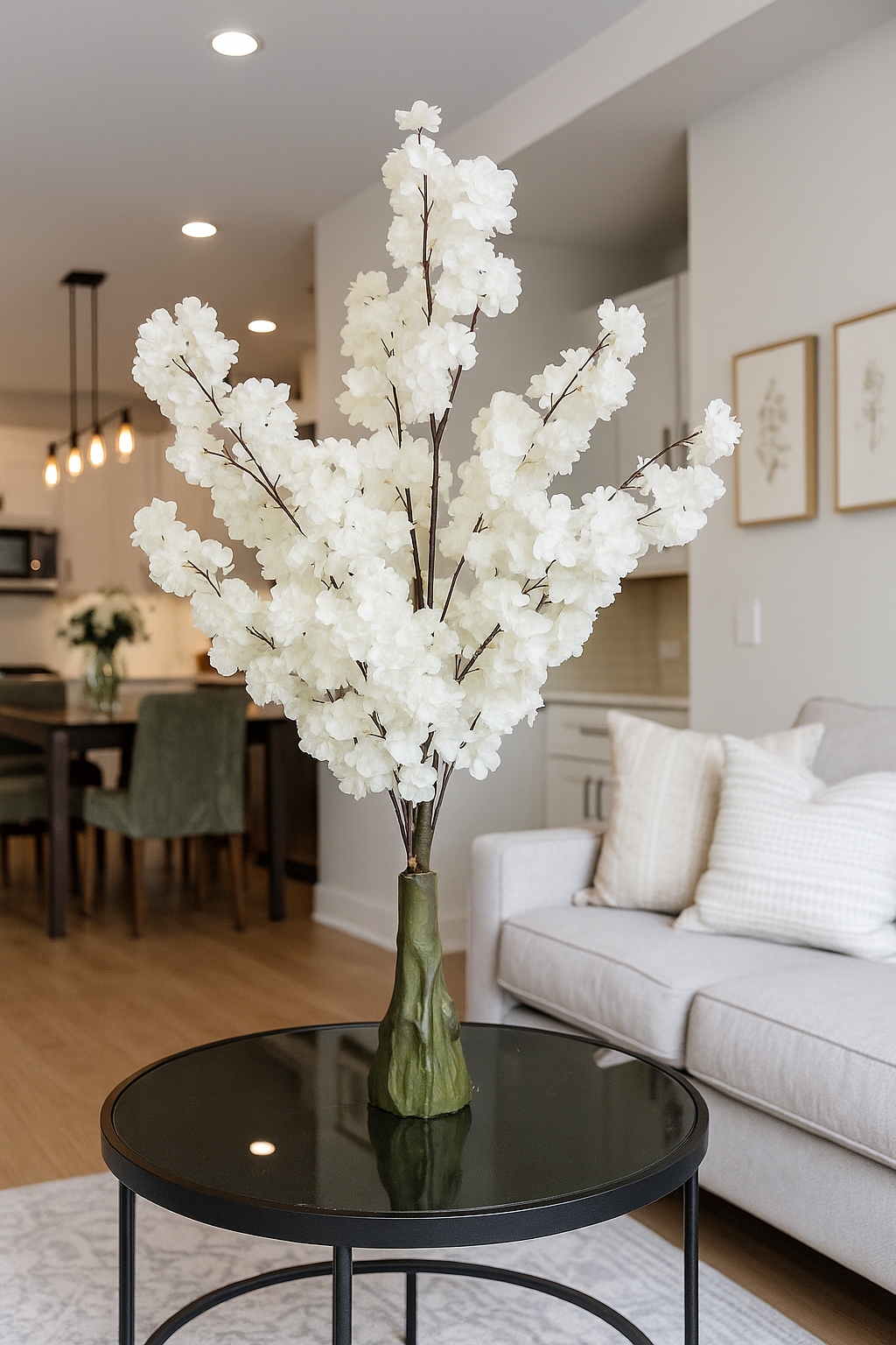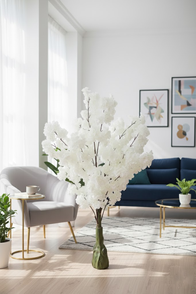 Zamislite atmosferu spokoja i elegancije koju ova prefinjena bela veštačka trešnja unosi u vaš prostor. Njena čista bela boja simbolizuje mir i čistoću, stvarajući oazu opuštanja i stila. Budite u trendu sa najnovijim hitom u uređenju enterijera u Srbiji i impresionirajte svoje goste besprekornim ukusom.