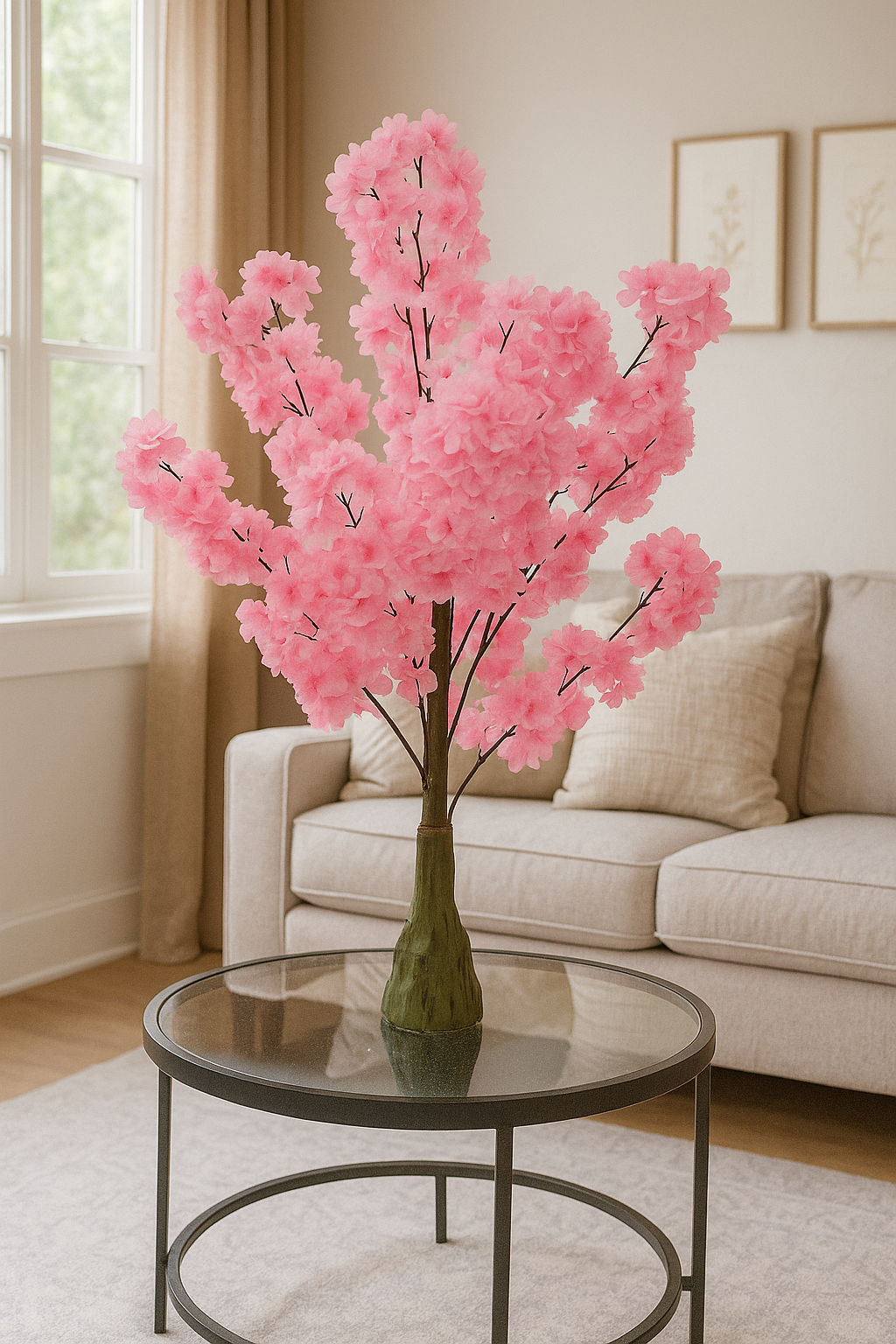 Ova izuzetno realistična veštačka japanska trešnja oživljava delikatnu lepotu njenog prirodnog pandana, sa predivnim cvetovima nežno roze boje.