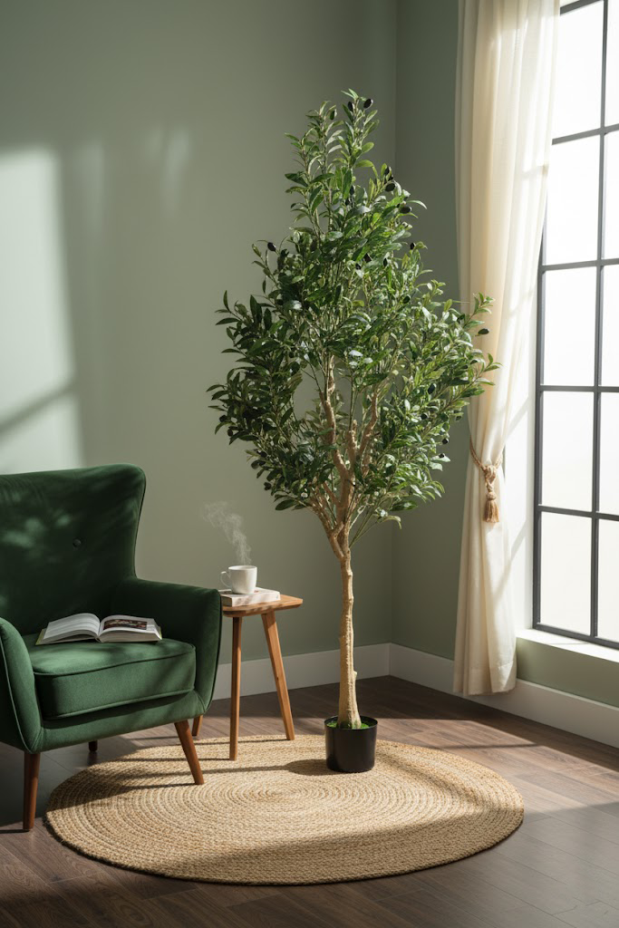 Dodajte dašak mediteranske elegancije u svoj dom ili poslovni prostor uz prelepu veštačku maslinu visine 180 cm. Ova realistična dekorativna biljka donosi toplinu i sofisticiranost bez potrebe za održavanjem. Njeno prirodno drveno stablo i bogata krošnja sa detaljno izrađenim listovima i plodovima masline stvaraju savršen balans između prirodnog izgleda i trajnosti.
