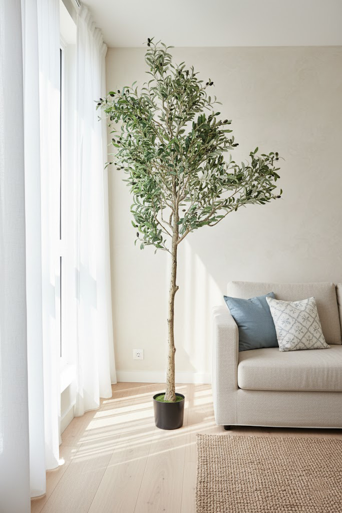 Predstavljamo veštačku maslinu visine impozantnih 240 cm. Savršena je za visoke plafone, event centre ili lobije. Detaljno rađena po uzoru na pravu maslinu, oduzima dah. Najbolje? Potpuno je rasklopiva, što je čini izuzetno lakom za transport, skladištenje i ponovno postavljanje!