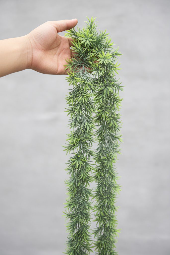 Izrađena od kvalitetnih materijala, ova dekorativna visilica ima realistično oblikovane listove i bogatu strukturu koja unosi svežinu u svaku prostoriju. Na vrhu ima praktičnu kuku koja omogućava lako kačenje na zid, plafon ili konstrukciju za biljke.
